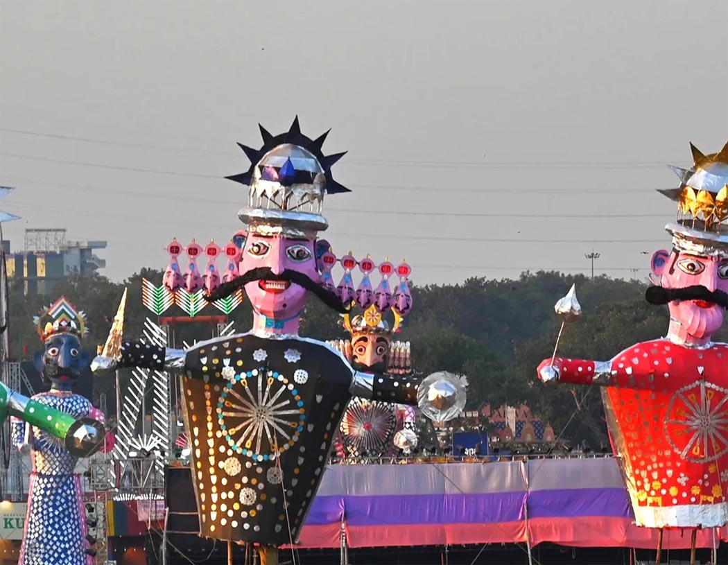 शहर में तीन प्रमुख स्थानों पर रावण दहन
