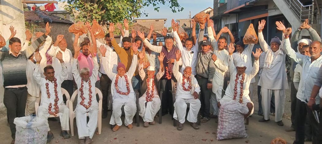 किसानों ने अपने खेतों में उगाई प्याज की मालाएं बनाकर उन्हें गले में पहना और सडक़ों पर उतर आए। उन्होंने संदेश दिया कि यह प्याज अब मुनाफा नहीं, बल्कि किसानों के गले की फांसी बन गई है।
