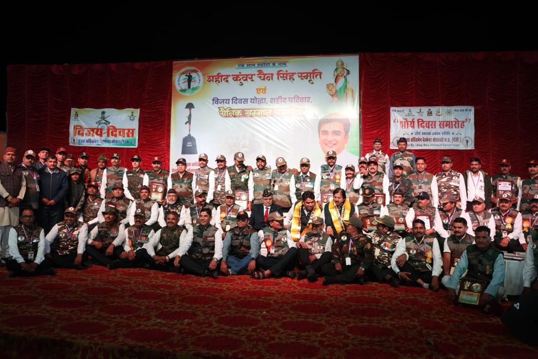 कार्यक्रम के दौरान अतिथियों द्वारा 15 शहीद सैनिकों के परिजनों को पदक और स्मृति चिन्ह भेंट कर सम्मानित किया गया। इस भावुक क्षण के दौरान पूरा परिसर ‘भारत माता की जय’ के नारों से गूंज उठा। साथ ही 1971 के युद्ध के योद्धाओं सहित 65 सेवानिवृत्त सैनिकों को भी सम्मान पत्र और स्मृति चिन्ह प्रदान किए गए। कैप्टन सुरेंद्र खरगोन और कैप्टन प्रसाद ने भी इस अवसर पर सैनिकों के गौरवशाली इतिहास को साझा किया।