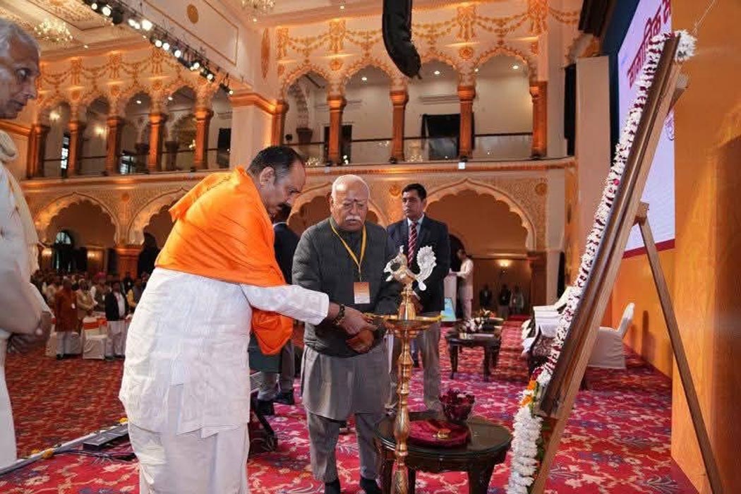 सीहोर। राजधानी भोपाल में राष्ट्रीय स्वयंसेवक संघ द्वारा आयोजित सामाजिक सद्भाव बैठक का शुभारंभ हुआ। कार्यक्रम में विश्व पटल पर श्री शिवाय नमस्तुभ्यं के मंत्र की अलख जगाने वाले और सीहोर की शान अंतरराष्ट्रीय कथावाचक पंडित प्रदीप मिश्रा मुख्य अतिथि के रूप में सम्मिलित हुए। कार्यक्रम की शुरुआत सरसंघचालक डॉ. मोहन भागवत और पंडित प्रदीप मिश्रा द्वारा संयुक्त रूप से दीप प्रज्वलित कर की गई।