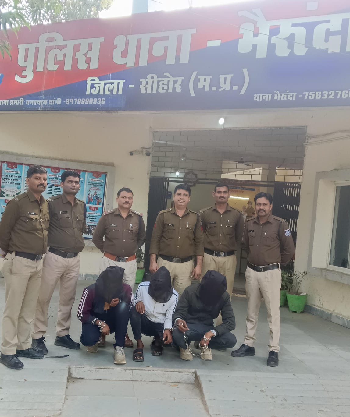 घटना की गंभीरता को देखते हुए एसडीओपी भैरुंदा रोशन कुमार जैन के मार्गदर्शन में थाना प्रभारी घनश्याम दांगी द्वारा एक विशेष टीम का गठन किया गया। टीम ने घटनास्थल एवं आसपास के क्षेत्रों में लगे सीसीटीवी कैमरों के फुटेज खंगाले, जिसमें कुछ संदिग्ध युवक नजर आए। तकनीकी साक्ष्य एवं मुखबिर की सूचना के आधार पर पुलिस ने दबिश देकर अरमान खान, आहद खान, मोहम्मद अरसद खान उर्फ मुविन तथा एक बाल अपचारी को हिरासत में लिया। पूछताछ के दौरान सभी आरोपियों ने अपराध स्वीकार किया। जांच में सामने आया कि आरोपी आहद खान द्वारा छीनी गई चांदी की चैन को खरीदा गया था, जिस पर प्रकरण में धारा 317(2) बीएनएस का इजाफा किया गया। पुलिस ने आरोपियों के पास से चांदी की एक चैन, एक पर्स, 1000 रुपये नकद एवं झपटमारी में प्रयुक्त मोटरसाइकिल जब्त की है, जिसकी कुल कीमत लगभग 90 हजार रुपये बताई जा रही है। उल्लेखनीय है कि गिरफ्तार आरोपियों में से तीन के विरुद्ध पूर्व से चोरी एवं मारपीट जैसे अपराध पंजीबद्ध हैं, जिसके चलते उनके विरुद्ध प्रतिबंधात्मक कार्रवाई भी की गई है।